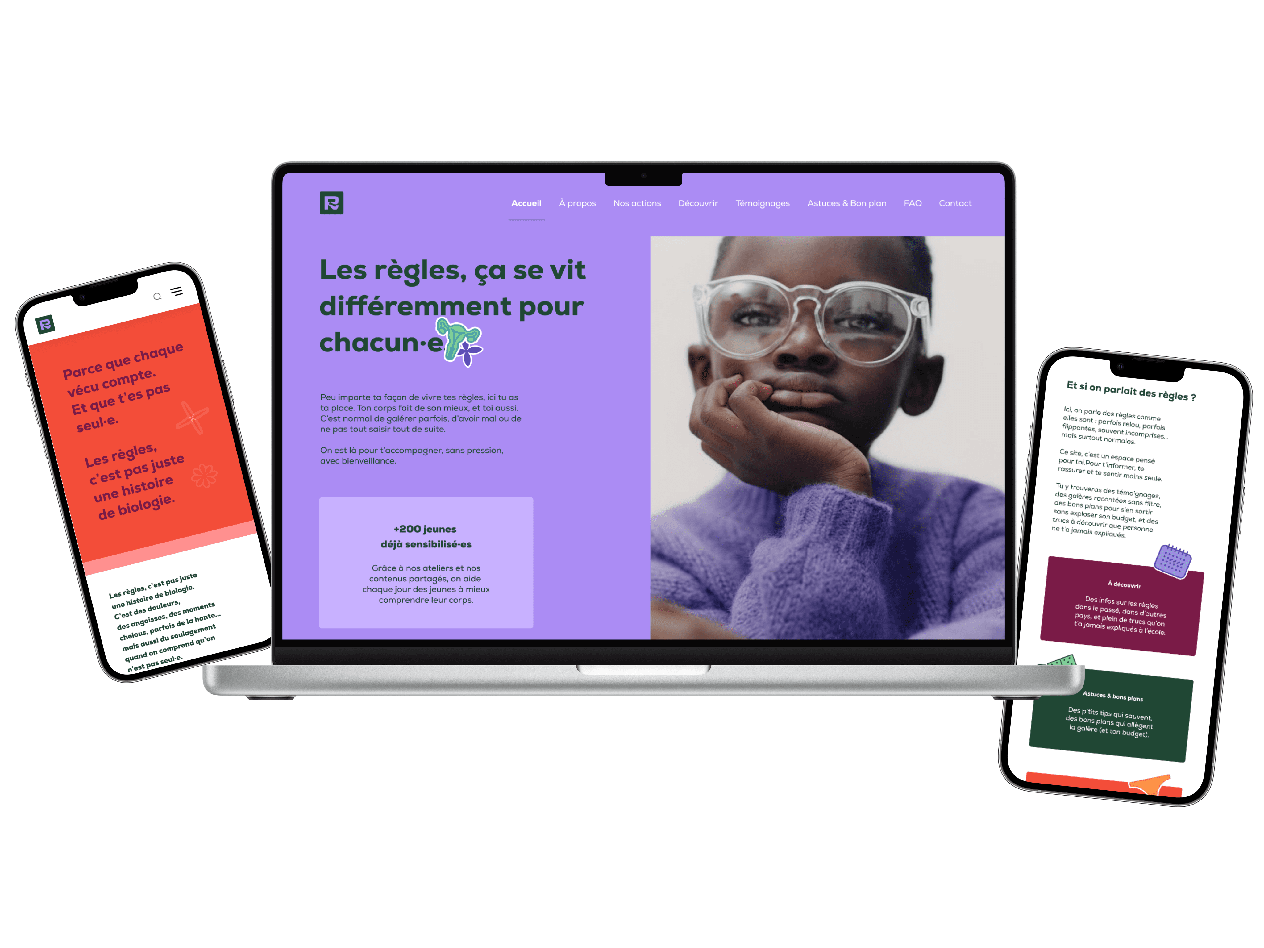 Le site web est un espace de découverte et d’information pour briser les tabous. Articles illustrés, témoignages, interviews, ressources et contenus interactifs : un univers coloré, inclusif et accessible pour s’informer à son rythme.